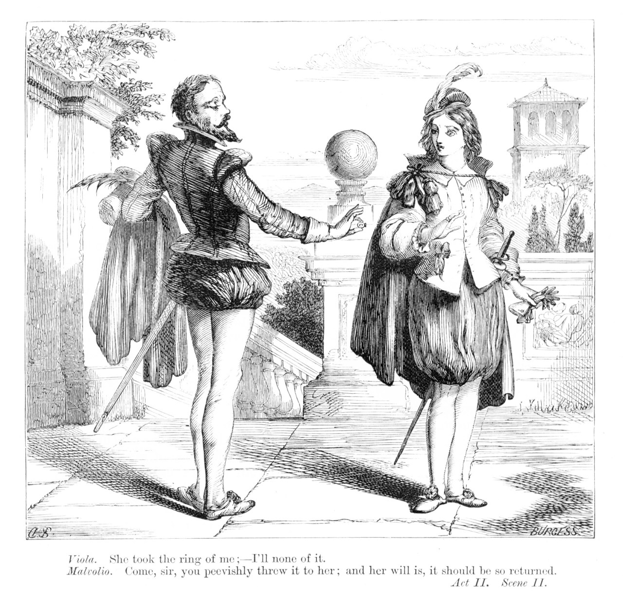 I’m also aware that there’s a great deal going on about language and symbolism in the play. Semiologists must have a field day when they examine Twelfth Night. Little is what it declares itself to be. There’s a great deal of effort – especially concerning love – to describe things or express feelings. At the centre is the forged letter with its cryptic message for Malvolio. It’s almost as if Shakespeare is warning about trying to think too rationally. Language deceives. The Fool is, after all, a “corruptor of words”. It’s interesting that he dislikes Caesario so much who, perhaps, is the other corruptor of language/meaning in the play.